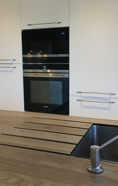 Magnifique réalisation Noir Mat, bois fumé, granit Black Cosmic